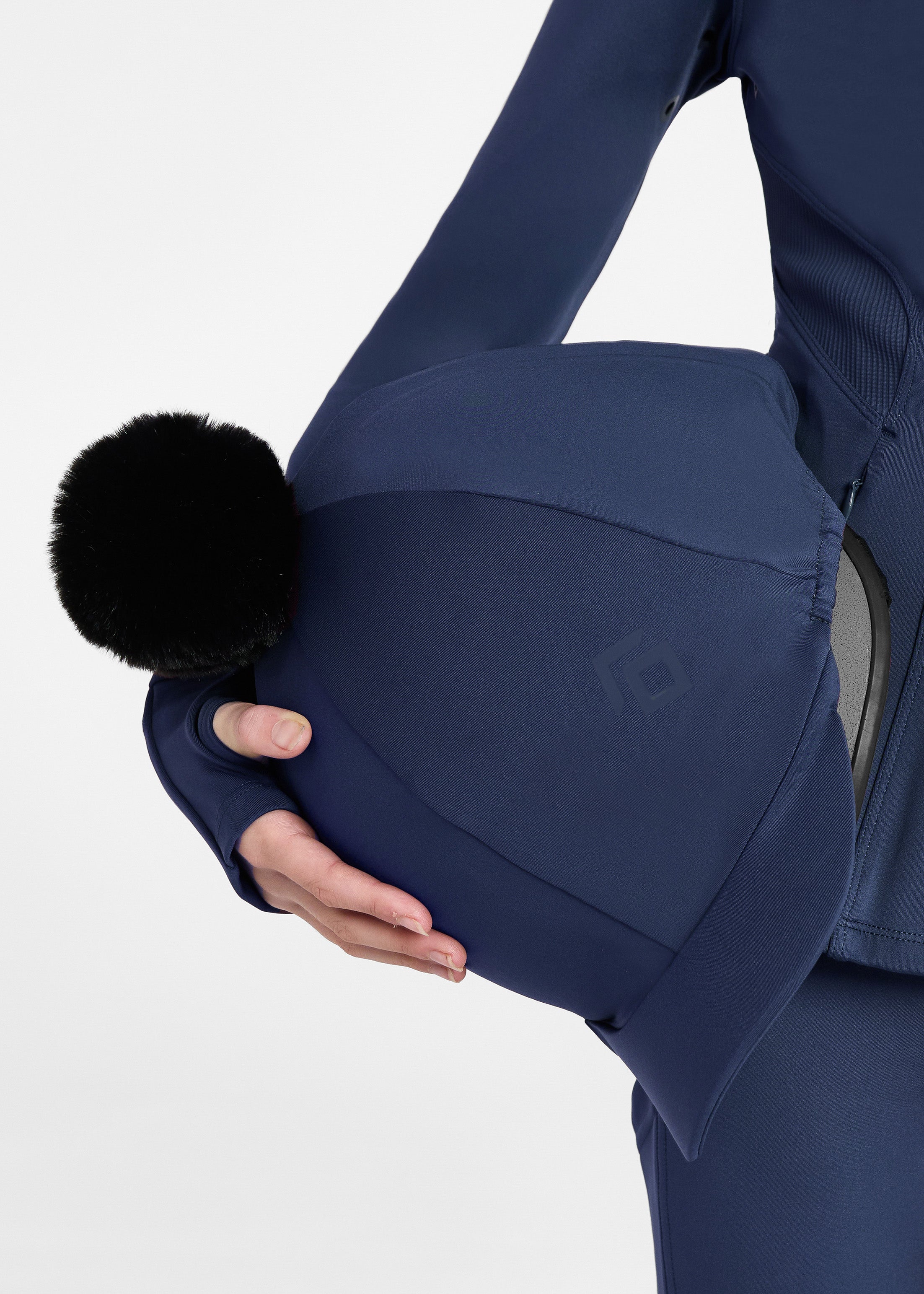 Stretch lycra hat silk to go on top of a skull cap. Finished with super soft faux pom pom and AD branding. Re-enforced peak, internal silicone grip so silk doesn't move.